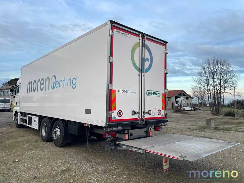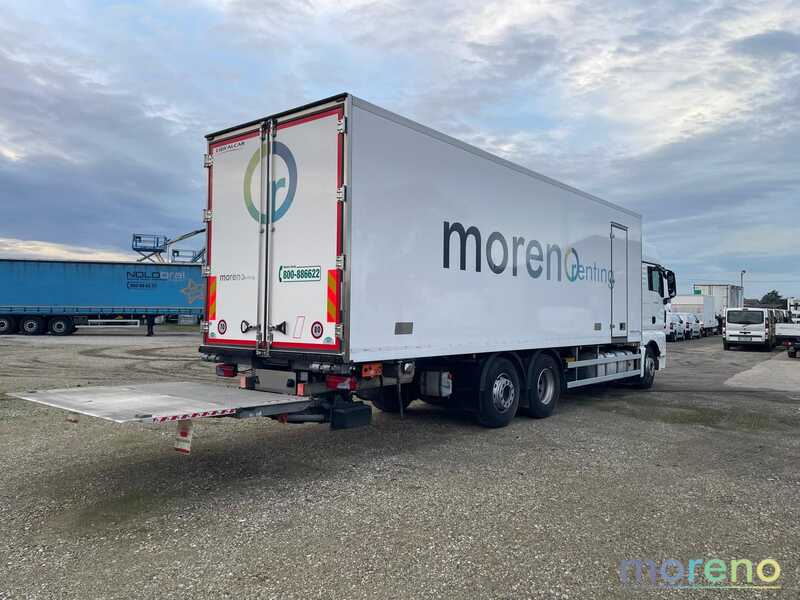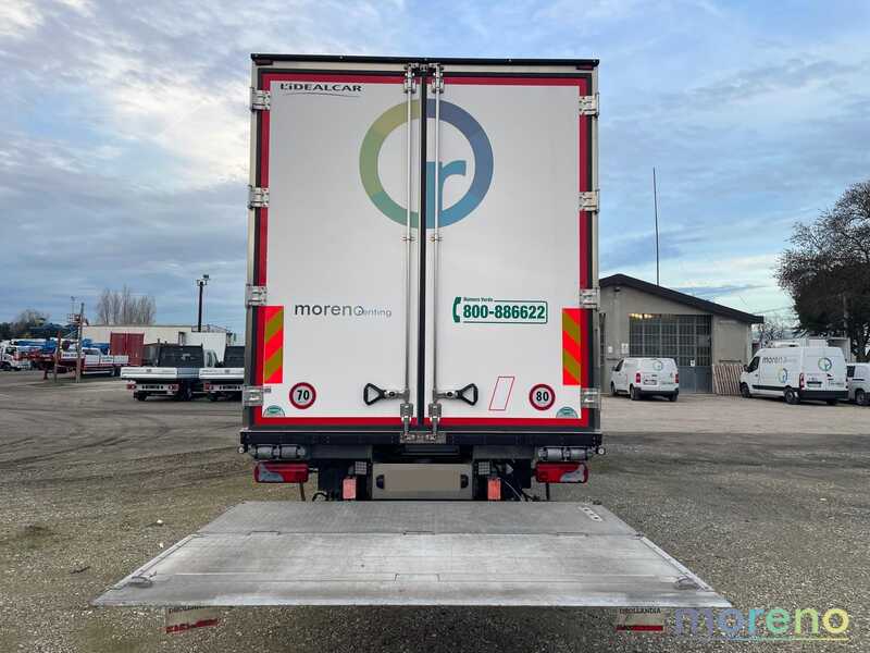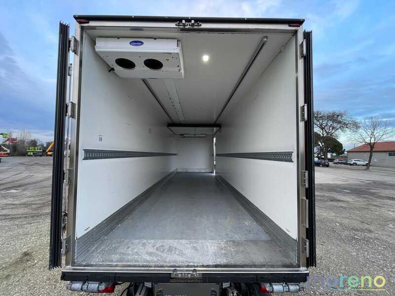 CABINA ALTA + LETTO / CAMBIO MANUALE / MOTORE Euro 5 / CLIMA / CRUISE CONTROL – CELLA FRIGO 23 PAL CON PORTA LATERALE / FASCIA BATTIPALLETS / FERMACARICO / VASCHETTE PESCE / THERMOREGISTRATORE /